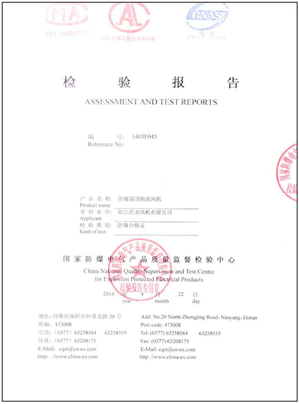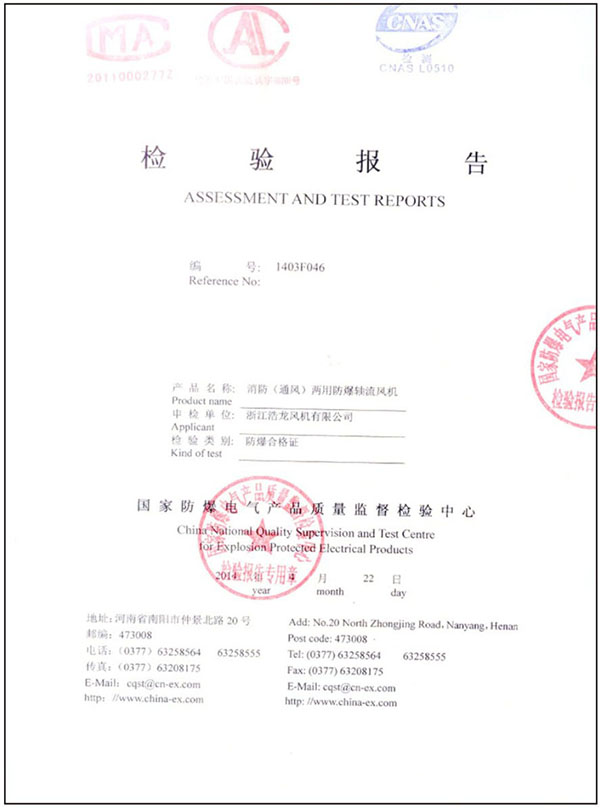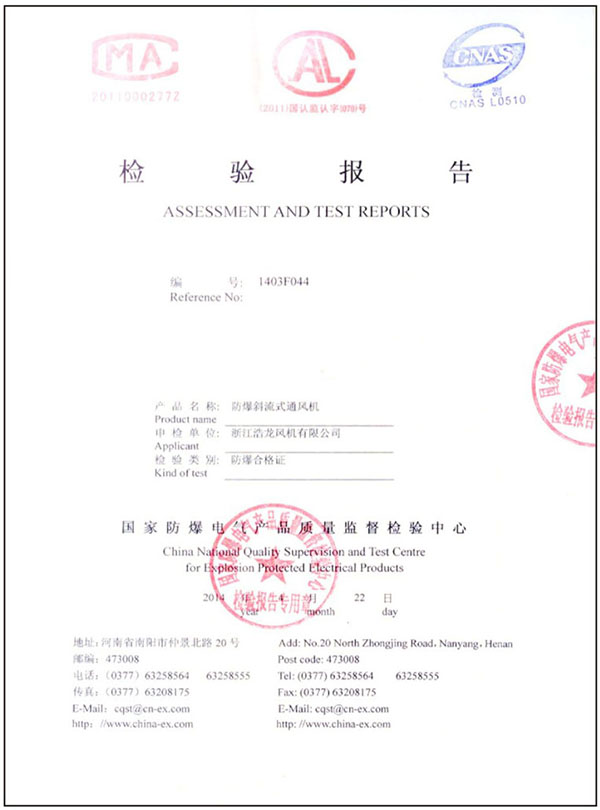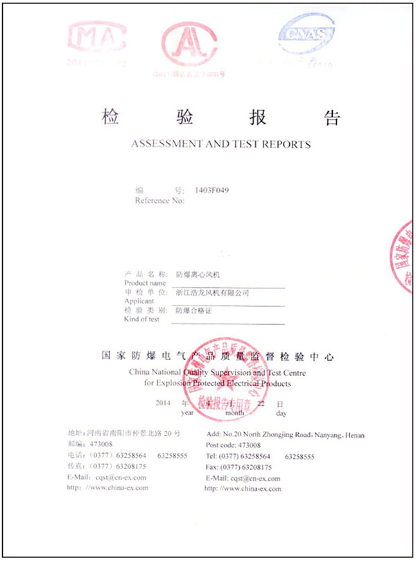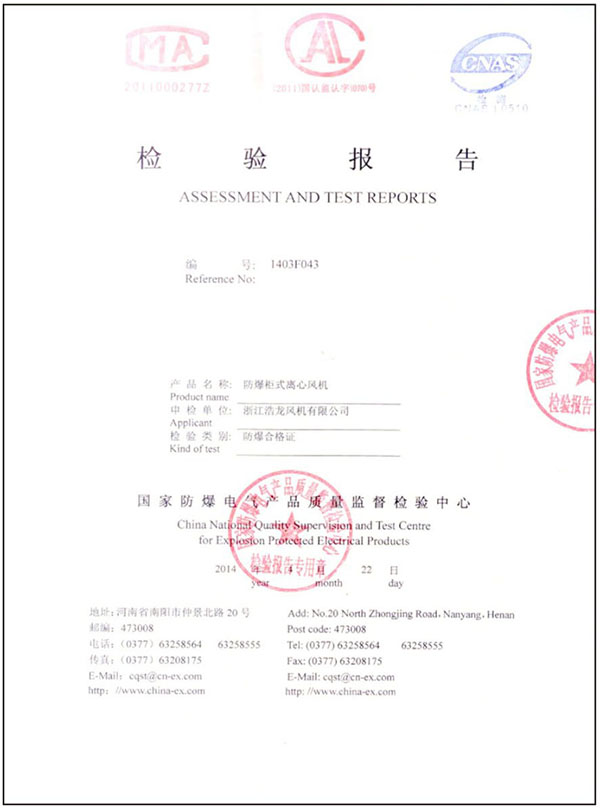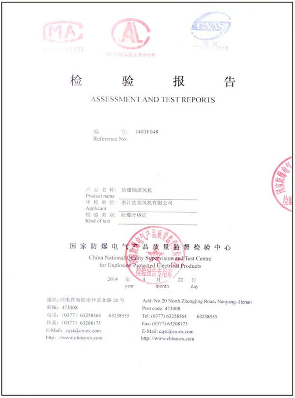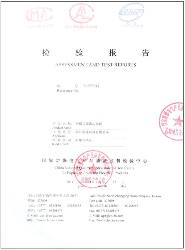 您當前的位置:  資質證書 > 檢測報告 > 防爆檢驗報告